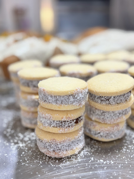Alfajores de maicena, rellenos con dulce de leche. Por 6 unidades.
